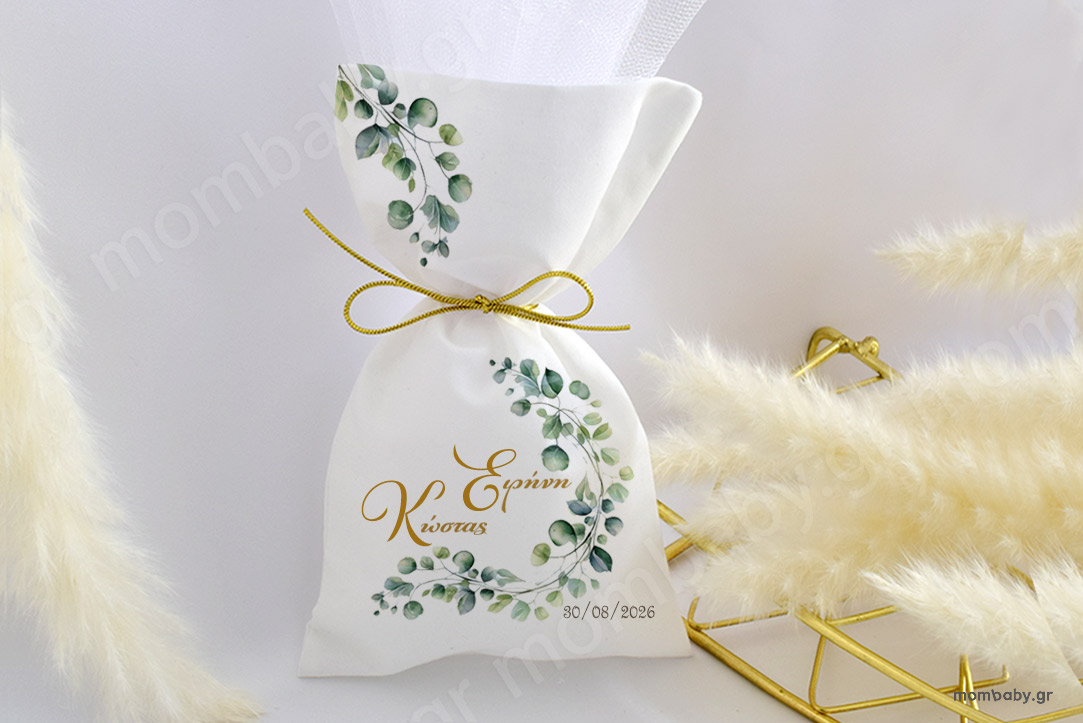 Μπομπονιέρα Γάμου Πουγκί Φύλλα Κλαδιά Ευκάλυπτος