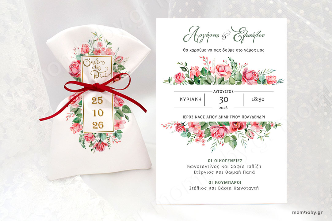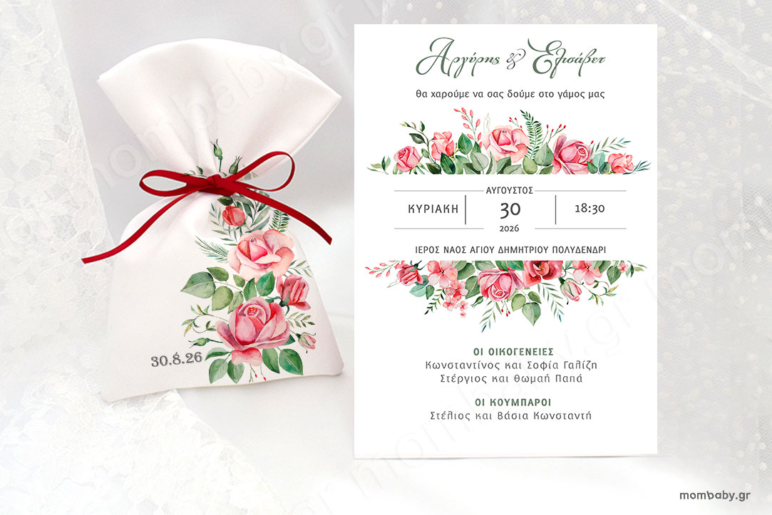 Προσκλητήριο Γάμου Τριαντάφυλλα