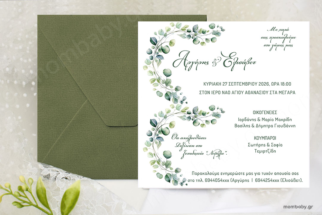 Προσκλητήριο Γάμου Στεφάνι Φύλλα Ευκάλυπτος