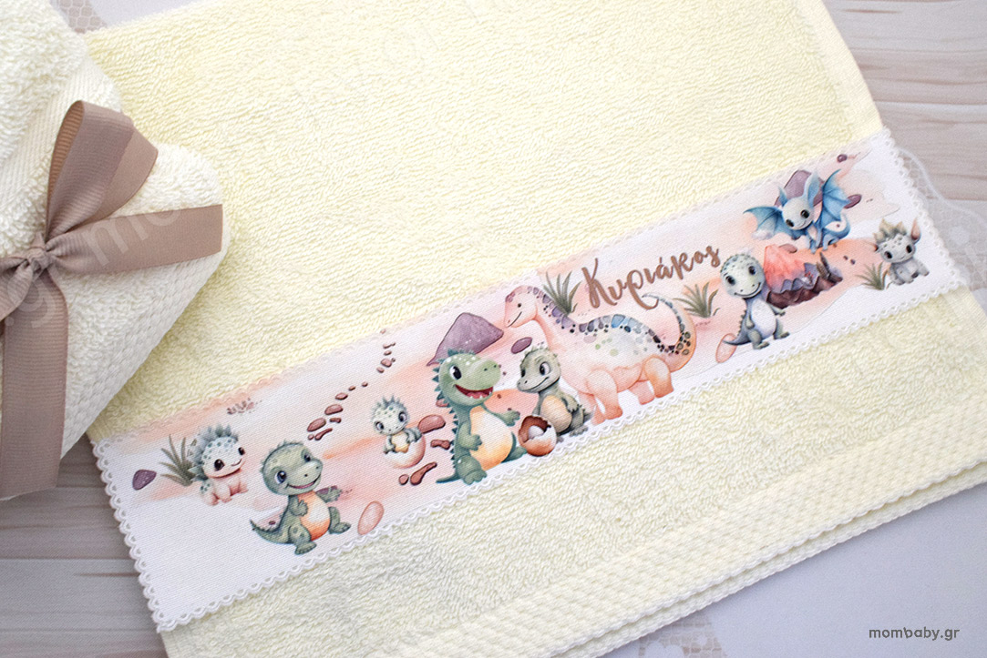Μπομπονιέρα Βάπτισης Πετσέτα Ιβουάρ Δεινόσαυροι