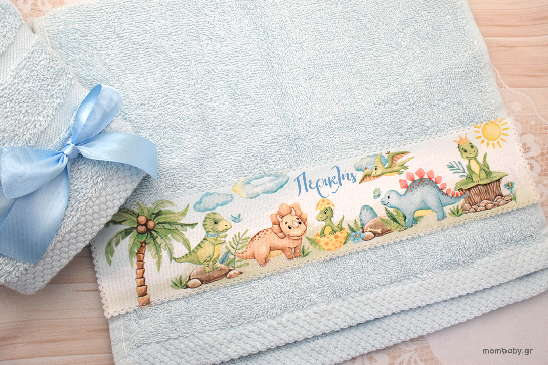 Μπομπονιέρα βάπτισης Πετσέτα Γαλάζια Δεινόσαυροι