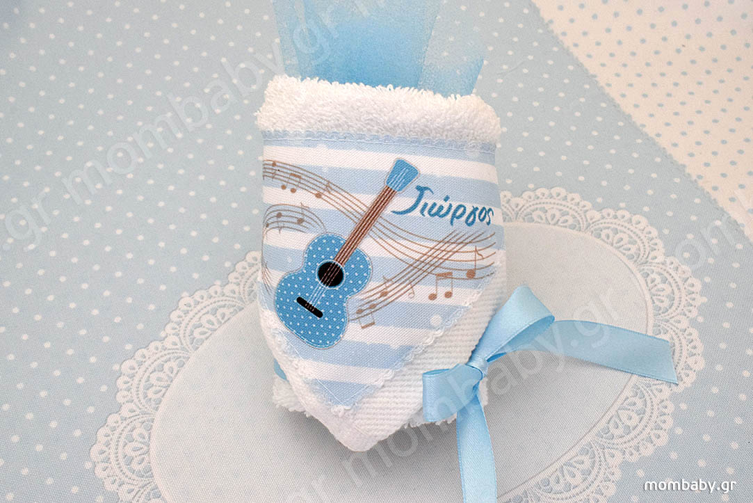 Μπομπονιέρα βάπτισης Πετσέτα Νότες Κιθάρα