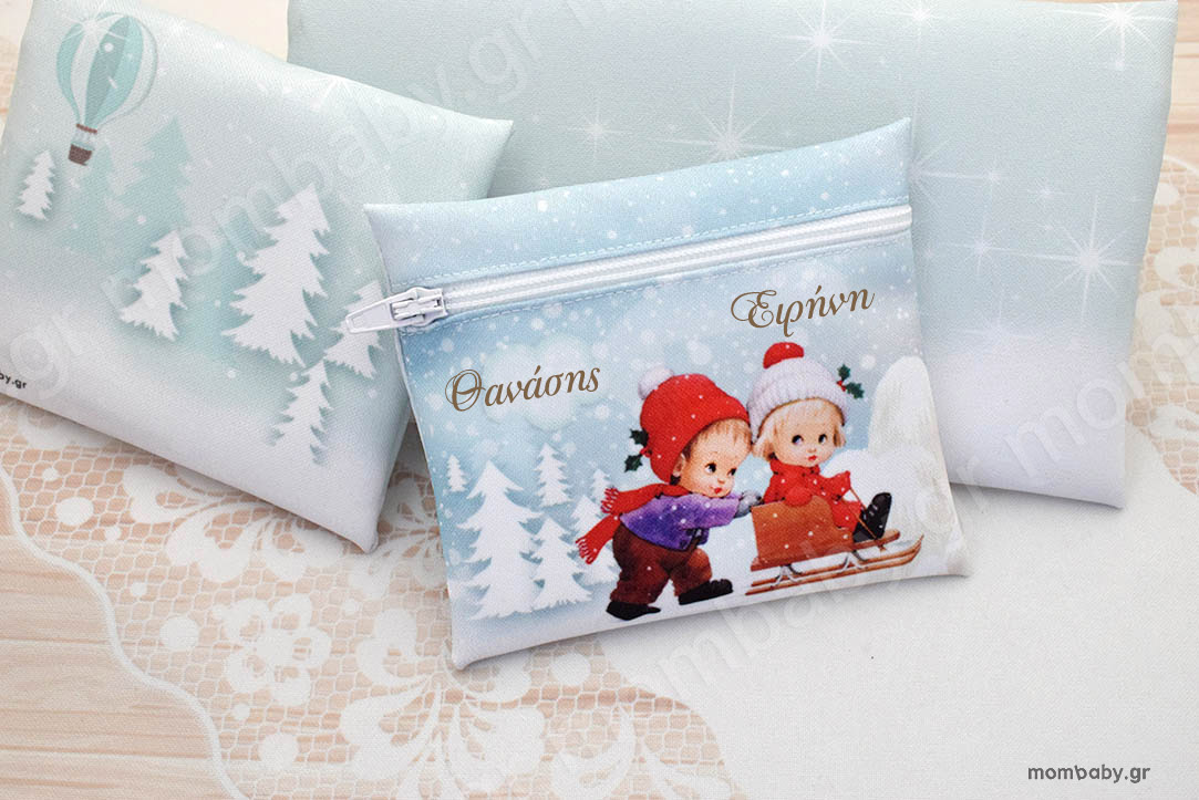 Μπομπονιέρα βάπτισης Πορτοφολάκι Χειμώνας Δίδυμα